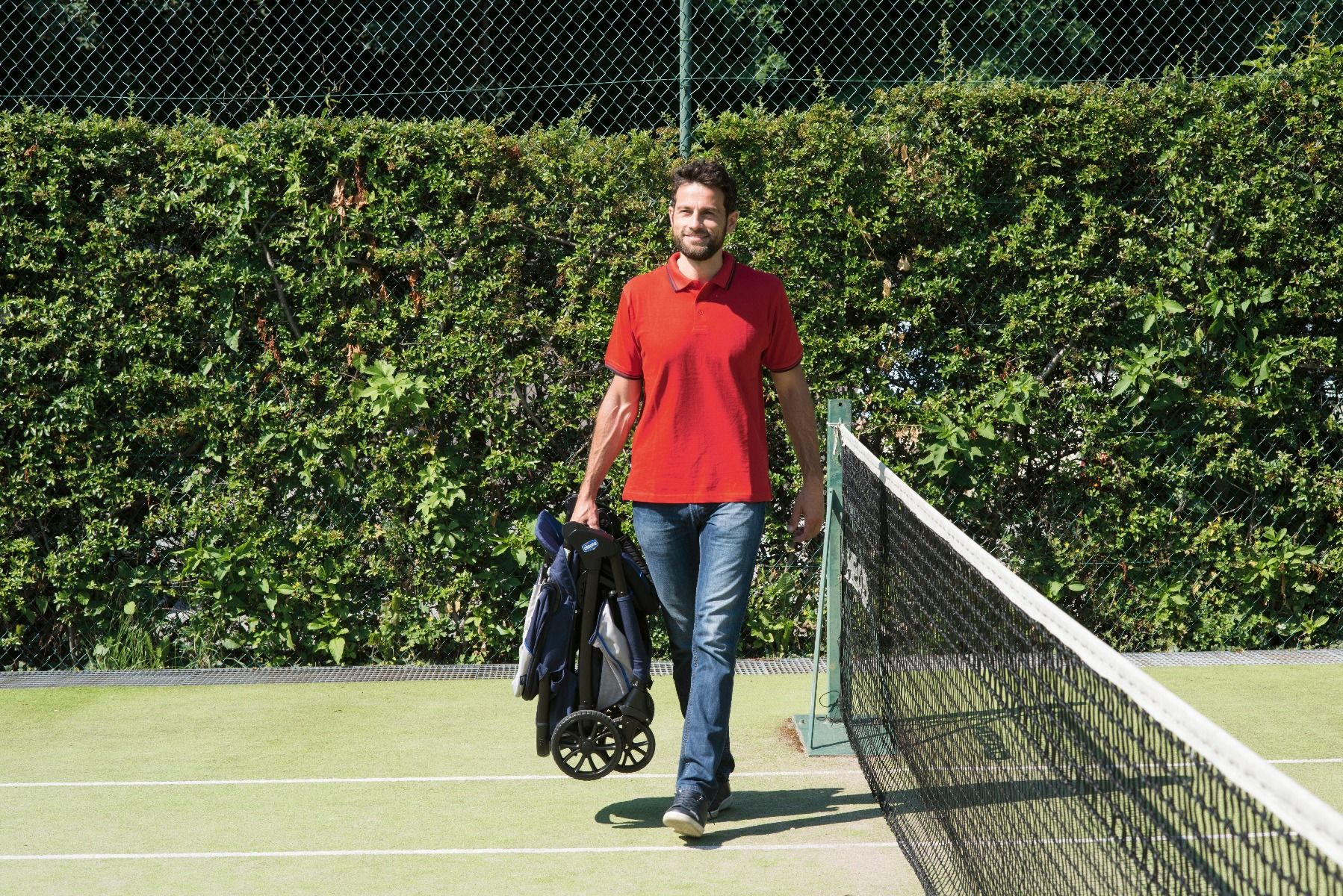 - Расширяемая секция из сетчатого материала обеспечивает вентиляцию и защиту от солнца в жаркие деньки.